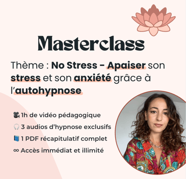 Une masterclass pour apprendre à identifier, apaiser et transformer le stress, l’anxiété ou l'angoisse grâce à l’auto-hypnose et des outils simples, concrets et réutilisables ✨