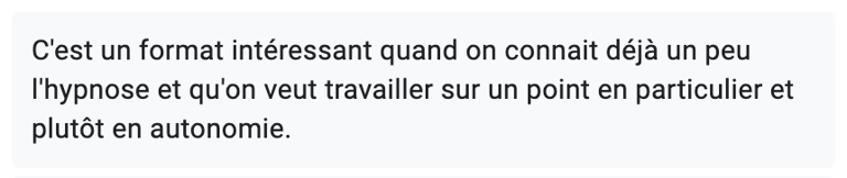 Il n'y a pas de bon ou de mauvais état hypnotique. Même si vous avez l'impression de "ne rien sentir", votre inconscient fait le job. Trust the process 😉